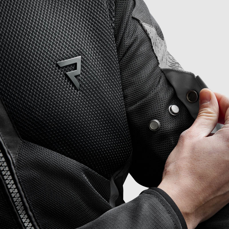 System wentylacji w kurtce Rebelhorn JAX opiera się na dużych panelach wykonanych z 3D Matrix Mesh oraz steel mesh. Takie połączenie pozwala na swobodny przepływ powietrza przez kurtkę, jednocześnie zachowując wysoki poziom wytrzymałości materiału.