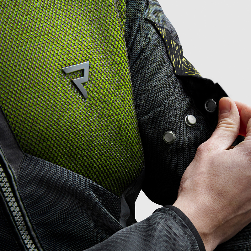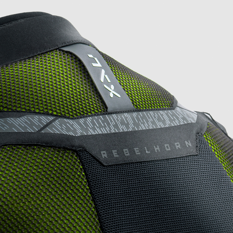System wentylacji w kurtce Rebelhorn JAX opiera się na dużych panelach wykonanych z 3D Matrix Mesh oraz steel mesh. Takie połączenie pozwala na swobodny przepływ powietrza przez kurtkę, jednocześnie zachowując wysoki poziom wytrzymałości materiału.