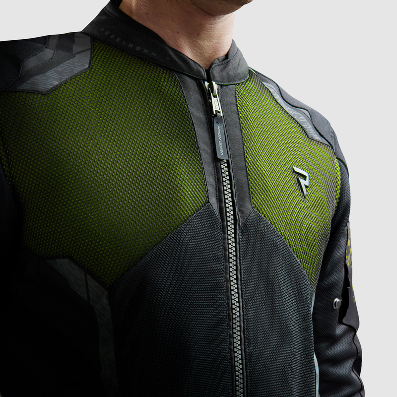 Jedną z największych zalet kurtki Rebelhorn JAX jest zaawansowana konstrukcja materiałowa. Warstwa zewnętrzna została wykonana z wytrzymałego poliestru 450D oraz poliestru Ripstop, który dzięki specjalnemu splotowi skutecznie zapobiega dalszemu rozdarciu materiału w razie uszkodzenia. Strefy wentylacyjne wykorzystują innowacyjny 3D Matrix Mesh oraz steel mesh, co zapewnia intensywną cyrkulację powietrza nawet podczas jazdy w wysokich temperaturach.