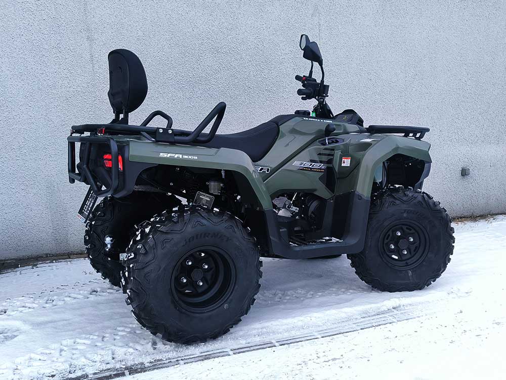 SFA300 został wyposażony w stalowe felgi, które są tanie w utrzymaniu – w przypadku uszkodzenia można je łatwo i niedrogo wymienić. To ważne dla osób, które planują intensywnie korzystać z pojazdu, np. w rolnictwie czy gospodarstwie domowym. Dzięki swojej konstrukcji quad znajdzie zastosowanie w rolnictwie, leśnictwie, przy pracach gospodarczych, ale także podczas rodzinnych wypadów czy weekendowych przygód w terenie.