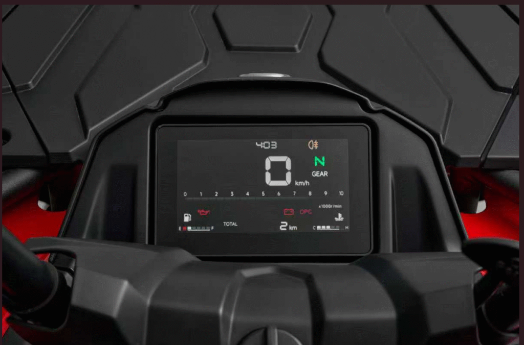 Inteligentny wyświetlacz LCD prezentuje wszystkie kluczowe parametry pojazdu: prędkość, obroty, temperaturę, kontrolki oleju, stan napędów i oświetlenia. Układ BOSCH EFI zapewnia: