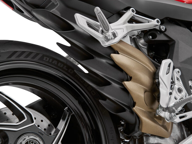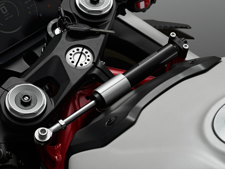 W standardzie motocykl wyposażony jest także w przednią kamerę – rejestrator jazdy, który na bieżąco nagrywa trasę, zwiększając bezpieczeństwo i umożliwiając zapis najciekawszych momentów z jazdy. Nad stabilnością przy ekstremalnych prędkościach czuwa amortyzator skrętu Marzocchi, eliminujący drgania kierownicy przy mocnym przyspieszaniu, nierównościach i bocznym wietrze.
