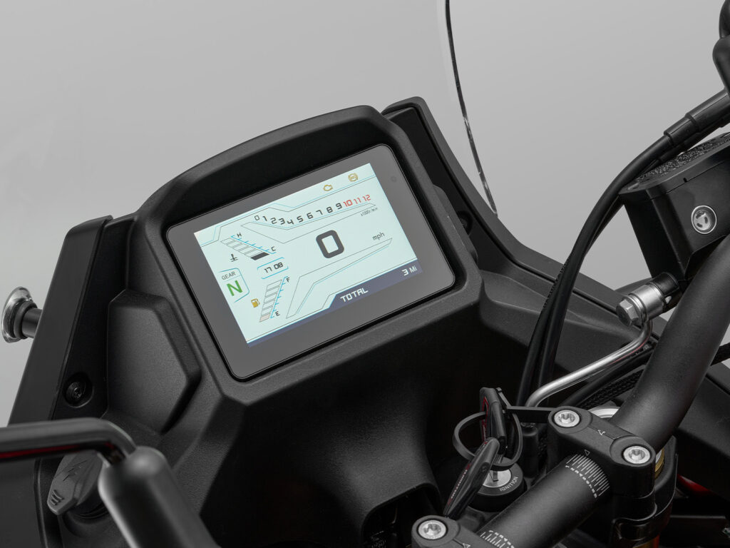 Nowoczesny wyświetlacz TFT prezentuje wyraźne informacje o jeździe. Porty ładowania USB-A i USB-C umożliwiają zasilanie urządzeń w trakcie wyprawy, co zwiększa komfort i bezpieczeństwo podróży.